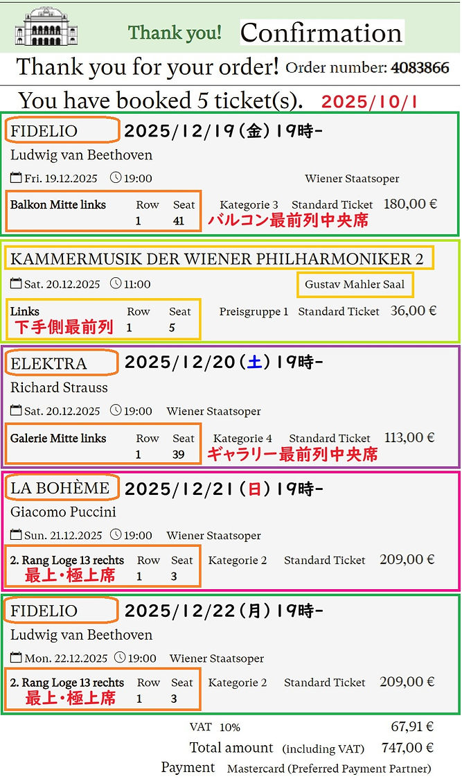 ★ウィーン国立歌劇場 2025/12/19-22 5公演 '25/10/2記